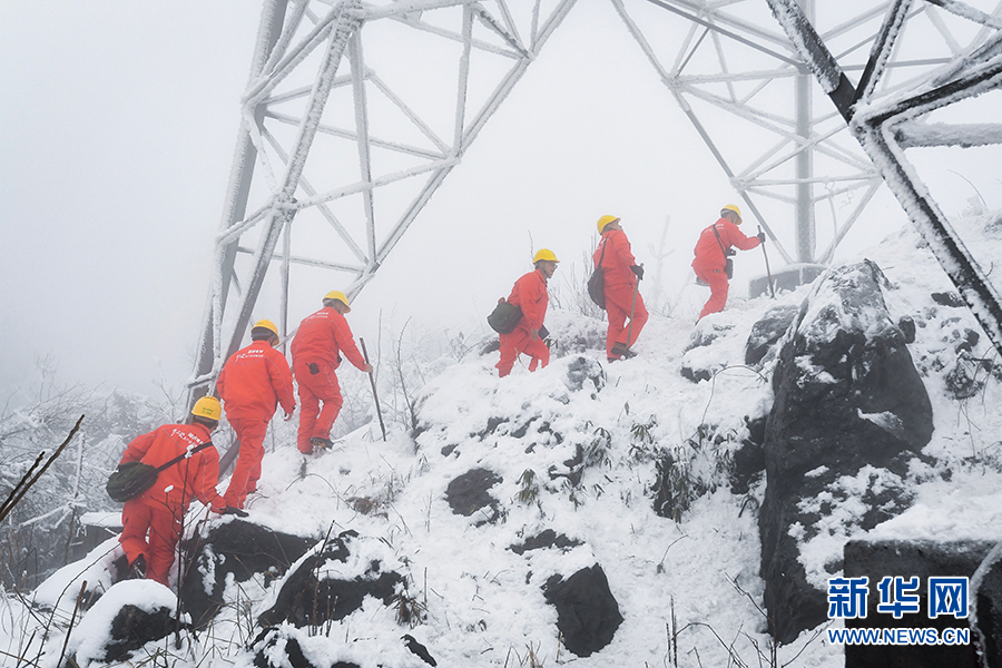 日前,受強(qiáng)寒流影響,重慶部分高海拔地區(qū)被大雪覆蓋。為保障用電安全,國(guó)家電網(wǎng)重慶長(zhǎng)壽供電公司黔江運(yùn)維站巡線工人深入冰山雪地,開展特巡,成為重冰無人區(qū)里保障用電安全的“逆行者”。新華網(wǎng) 李相博 攝