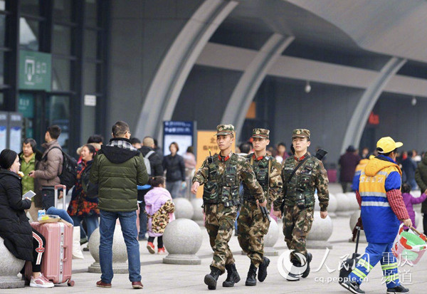 春運(yùn)期間,巡邏在西站附近的武警官兵。西站管委會(huì)供圖