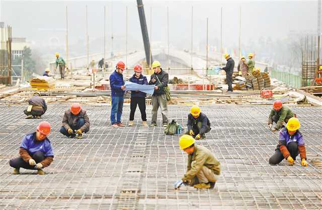 3月1日,建設(shè)工人正在重慶軌道交通1號線尖璧段控制性工程——璧山站緊張施工。