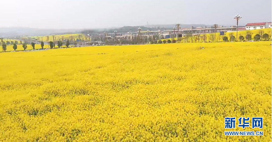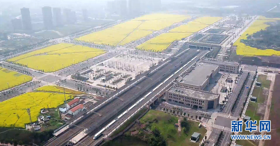 一列列動(dòng)車(chē)從金黃色的花海中駛過(guò),宛如開(kāi)往春天的高鐵。新華網(wǎng) 向進(jìn) 攝
