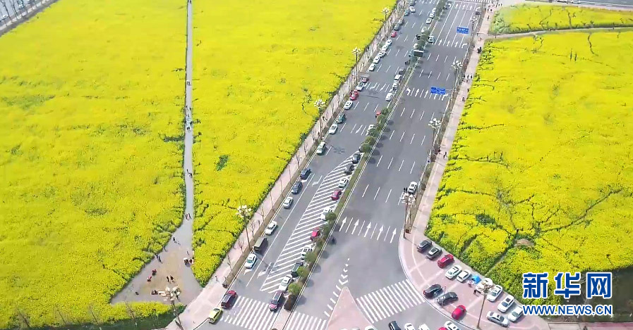 3月以來(lái),重慶復(fù)盛高鐵站周邊的千畝油菜花海意外走紅。拍攝在花海中穿行的高鐵動(dòng)車(chē),成為許多市民的春游新選擇。 新華網(wǎng) 向進(jìn) 攝