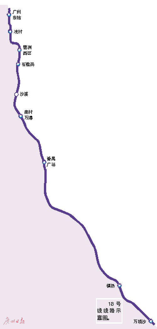 線路北起廣州東站、南至萬頃沙樞紐,總長62.5公里,設(shè)站9座,平均站間距超過7公里。為實現(xiàn)廣州市中心與南沙副中心30分鐘快速直達(dá)的時空目標(biāo),線路采用了最高時速160公里的系統(tǒng)制式,線路走向盡可能拉直及嚴(yán)格控制沿線車站設(shè)置數(shù)量。