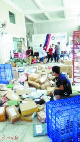 快遞點(diǎn)快件堆積如山。 廣州日報全媒體記者高鶴濤 攝