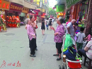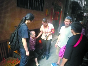 冼婆婆每說到一個地方,他們?nèi)齻人就一路陪她著來到那個地方,希望她回憶起更多細節(jié),就這樣,這群臨時組成的“孫子”“孫女”陪著冼婆婆一條又一條街巷、一個又一個小區(qū)尋找回家的路,上社、棠下、棠東……當他們走進上社牌坊。很幸運,他們遇見了冼婆婆的街坊,跟街坊說清來由后,街坊很熱情地協(xié)助打電話聯(lián)系冼婆婆的家屬。冼婆婆的兒子潘先生和孫女聞訊趕來,冼婆婆終于與家人團聚了。