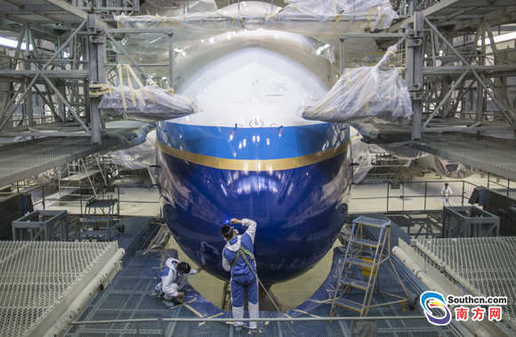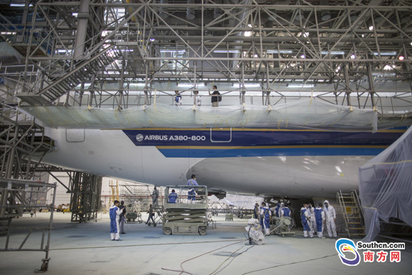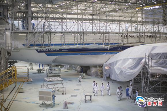 此次噴漆工作標(biāo)志著南航首架A380的6年定檢進(jìn)入最后階段,這架A380即將于6月初出廠,重新投入運營。