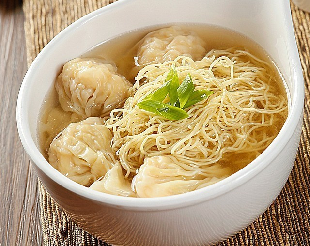 云吞面:一碗上乘的云吞面,有三個(gè)要素:一是面,必須是竹升打制的銀絲面;二是餡,要有新鮮的蝦仁、二七比例的肥瘦豬肉,還要用雞蛋黃鎖住肉味;三是湯,用大地魚和豬骨熬成的濃湯再加入蝦芋,色金黃通透,濃而不膩。
