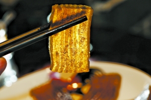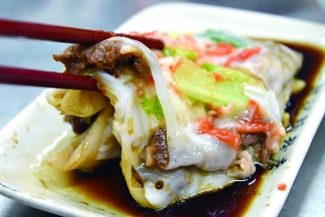 布拉腸:一碟正宗、地道的布拉腸其粉皮薄如蟬翼、晶瑩剔透,澆上醬計(jì),吃起來口感細(xì)膩爽滑而不失韌性。