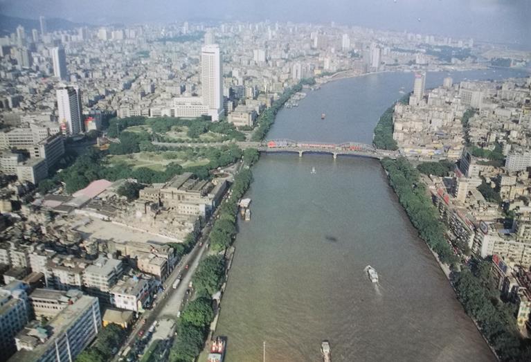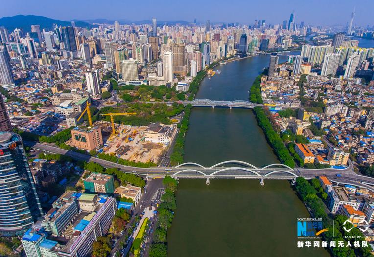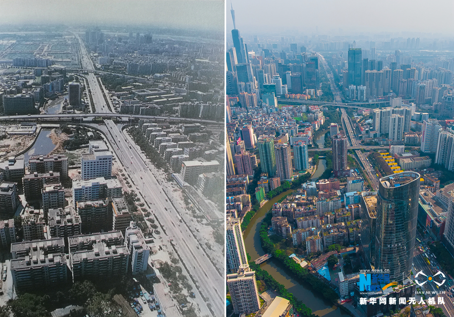 《廣州城建豐碑》一書(shū)里面收錄了幾張難得一見(jiàn)的航拍老照片。日前,新華網(wǎng)無(wú)人機(jī)在相同角度實(shí)拍對(duì)比,記錄了廣州城市交通及周邊環(huán)境的變遷。