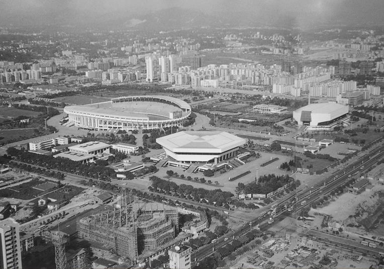 上圖:天河體育中心老照片,位于天河路的天河體育中心,由體育場(chǎng)、體育館和游泳館三大主體建筑及其它配套工程組成;下圖:2017年海天河體育中心航拍圖(拼版照片,3月1日攝)。新華網(wǎng)發(fā) 陳鴻攝
