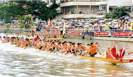 “江水漲,江面闊,大人細(xì)路睇龍船!碧旌痈鞔宓凝堉劬跋騺(lái)火爆,各村遵照起龍、訓(xùn)練、采青、趁景的步驟熱烈地進(jìn)行著。其中擁有49條龍舟的車(chē)陂村,是天河龍舟最多的村。石牌景、獵德景、楊箕景等龍舟景位于廣州CB D,趁景活動(dòng)全部安排在端午節(jié)正日,將廣州端午節(jié)推向高潮。