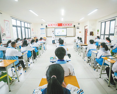貴州大方縣恒大民族中學(xué),醫(yī)務(wù)人員正在給學(xué)生教授衛(wèi)生知識。