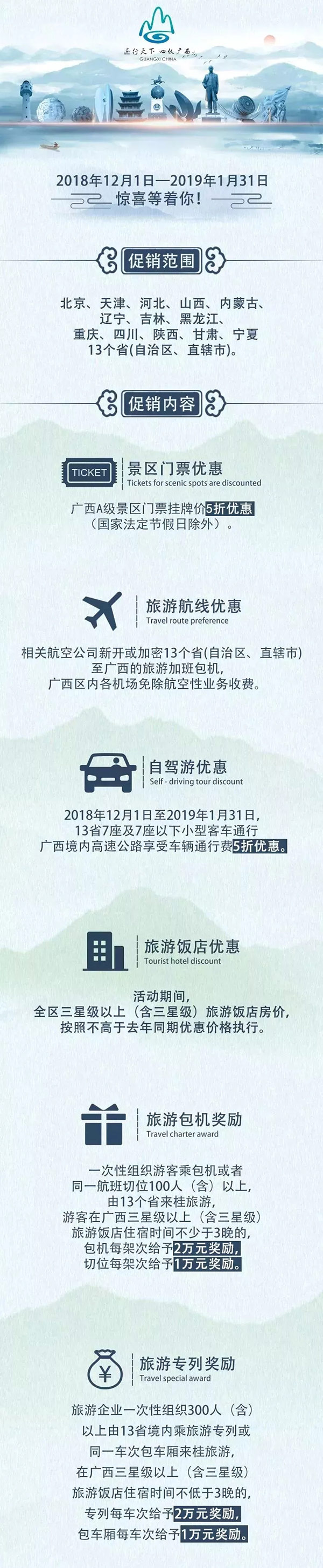 廣西景區(qū)、酒店、高速公路、航空聯(lián)手,為北方13省市帶來(lái)溫暖冬季多重優(yōu)惠。