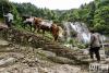 騾馬馱著石材艱難上山,用于翻修景區(qū)老路。