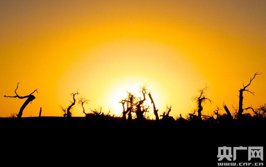 央廣網(wǎng)10月19日消息(記者黎政祥 吳弘樂 韓曉)內(nèi)蒙古額濟(jì)納旗作為世界僅存三處胡楊生長(zhǎng)區(qū)之一,迎來了這里的最美金秋季!爸袊(guó)額濟(jì)納國(guó)際金秋胡楊生態(tài)旅游節(jié)”今年迎來了第十六個(gè)年頭,旅行者們紛紛不遠(yuǎn)萬里,來此一睹胡楊林的萬千風(fēng)情。胡楊是世界上最古老的楊樹品種,素有“生而千年不死,死而千年不倒,倒而千年不朽”的美譽(yù)。樹葉在深秋中染成金黃色、橙紅色,與死而不朽的胡楊樹枝交相呼應(yīng),形成絕美的勝景。