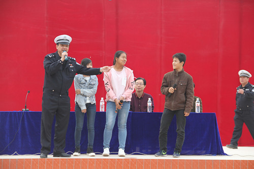 在講座過(guò)程中,桂平交警根據(jù)木根初中地處玉桂二級(jí)公路邊、路況復(fù)雜的現(xiàn)狀,深刻闡述提高交通安全防范意識(shí)的重要性,以近期本市某鎮(zhèn)初中三名學(xué)生的交通違法行為導(dǎo)致交通事故而身亡的慘痛案例為警示教訓(xùn),告誡廣大青少年學(xué)生要嚴(yán)守交通法規(guī),增強(qiáng)交通安全意識(shí),努力做到文明出行和安全出行。桂平交警具體講解了目前轄區(qū)的道路交通安全形勢(shì),深入分析了發(fā)生交通事故的原因及危害,向廣大師生講解如何做到安全步行,提醒出行騎自行車(chē)以及乘車(chē)的注意事項(xiàng)。在講座過(guò)程中,桂平交警還對(duì)道路交通安全常識(shí)進(jìn)行普及,以有獎(jiǎng)問(wèn)答的形式調(diào)動(dòng)學(xué)生參與交通安全知識(shí)學(xué)習(xí)的積極性。(注:圖片由廣西桂平市公安局交警大隊(duì)提供)