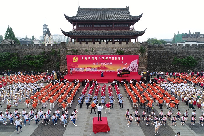 央廣網(wǎng)衢州7月1日消息(記者李佳 通訊員祝春蕾)今天上午,“千琴頌黨恩”大型廣場器樂演奏會活動,在浙江衢州水亭門外的古城墻遺址公園廣場上舉行,近千名器樂愛好者一起奏響樂章,慶祝中國共產(chǎn)黨建黨96周年。