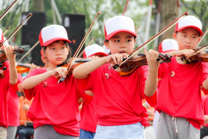 9點整,一曲由衢州籍著名二胡演奏家許奕領(lǐng)奏,衢州市音樂家協(xié)會方岳明指揮,二胡、小提琴、琵琶、阮、月琴等中國傳統(tǒng)民族樂器聯(lián)奏的《沒有共產(chǎn)黨就沒有新中國》拉開了“千琴頌黨恩”大型廣場演奏會的序幕,隨后《繡花鞋》、《我的祖國》和《走進(jìn)新時代》等一曲又一曲的演奏,歌頌黨和祖國、家鄉(xiāng)。