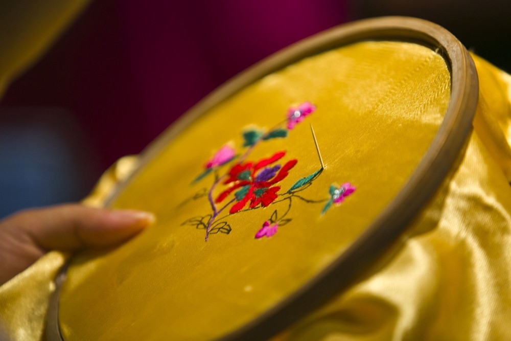央廣網(wǎng)寧波9月19日消息(記者曹美麗 通訊員 陳云松 吳劼陽)用麥粉摻水燒半熟做成漿糊,和碎布糊到板上,等晾干后拿出剪好鞋子和帽型的版樣裁剪,再在上面繡制虎頭和花草圖案……日前,“大蟲帽、虎頭鞋”寧波市非遺項目傳承演示活動在該市寧海縣桑洲鎮(zhèn)南嶺村南山驛民宿舉行。打布粕、剪樣、襯里、繡花,在半天的課程中,非遺傳承人現(xiàn)場展示“大蟲帽、虎頭鞋”的制作工藝流程,讓現(xiàn)場從各地趕來的眾多非遺愛好者大飽眼福,也感受了非物質(zhì)文化遺產(chǎn)的獨(dú)特魅力。