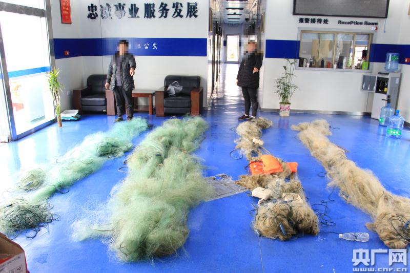現(xiàn)場(chǎng)查處非法捕撈工具(央廣網(wǎng)發(fā) 通訊員余湖 攝)