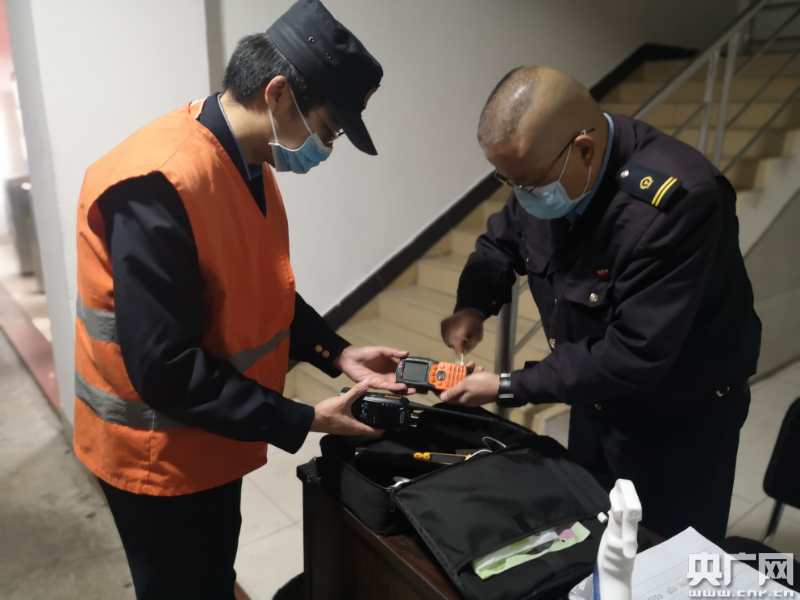 地勤機(jī)械師出乘前,乘務(wù)指導(dǎo)俞培姿在檢查隨身設(shè)備情況(央廣網(wǎng)發(fā) 通訊員供圖)
