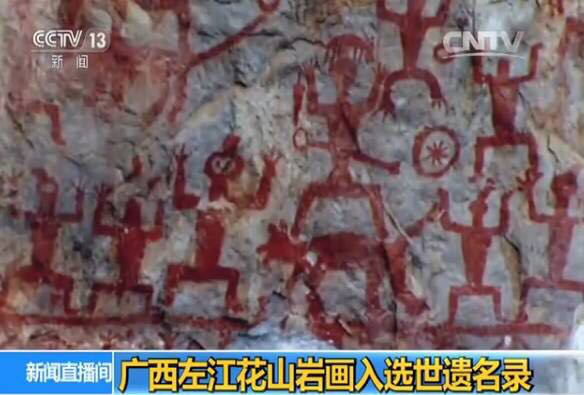 花山巖畫(huà)局部截圖。(圖片來(lái)源:央視網(wǎng))