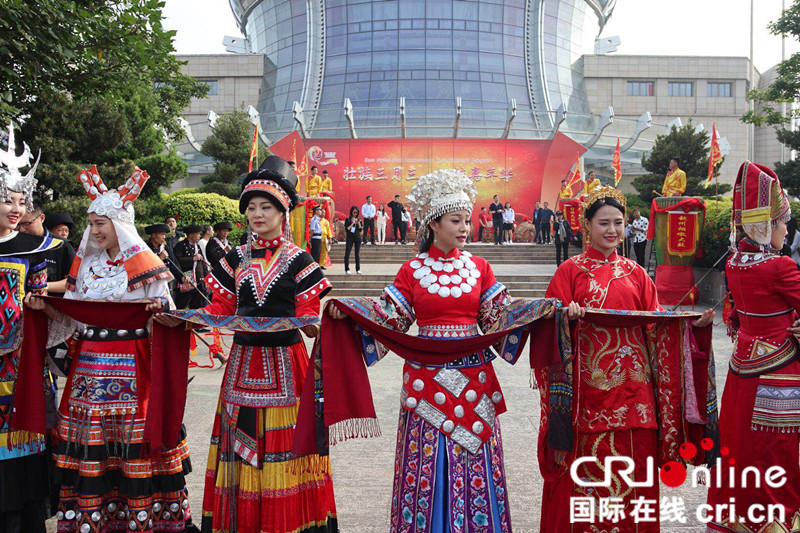 廣西世居民族盛裝女子組成歌陣唱響迎客歌。(圖片來(lái)源:國(guó)際在線)