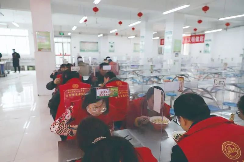 鄭州市第三十一中學(xué)舉行疫情防控演練,模擬食堂就餐