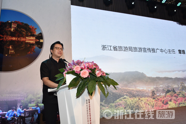 浙江省旅游宣傳推廣中心主任章垠預(yù)祝彌勒文化節(jié)順利舉辦