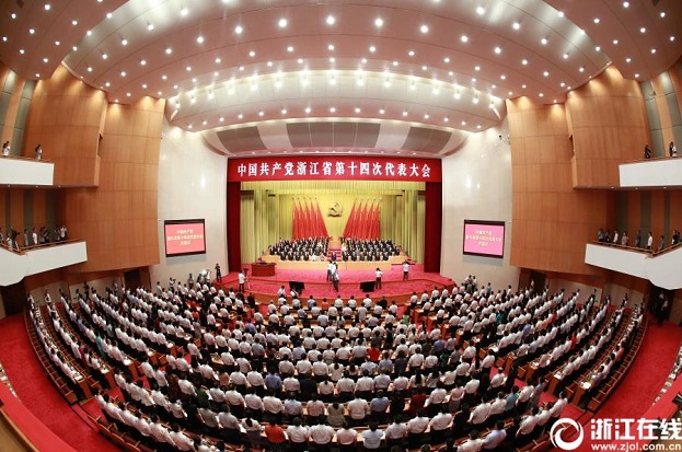 6月12日上午,浙江省第十四次黨代會在省人民大會堂隆重開幕,全場奏唱國歌。(浙江在線記者 李震宇 倪雁強 董旭明 張迪 吳元峰 王堅穎 攝)